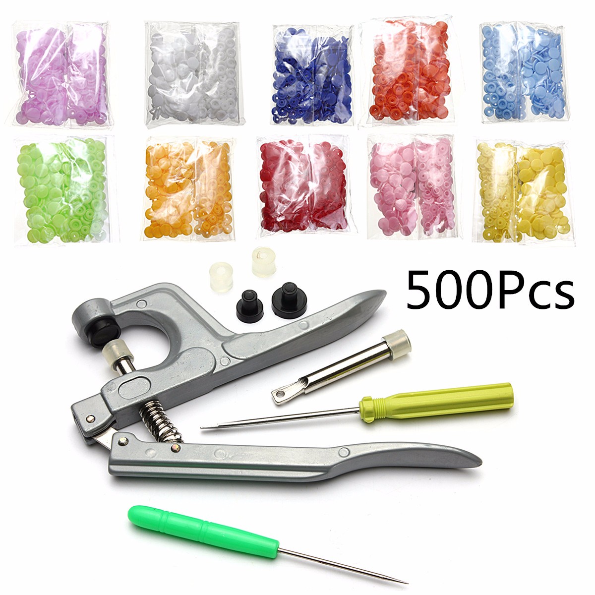 500 Sets Snap Press Plier Plastic Resin Stud Button Fastener Setter Tool Kit