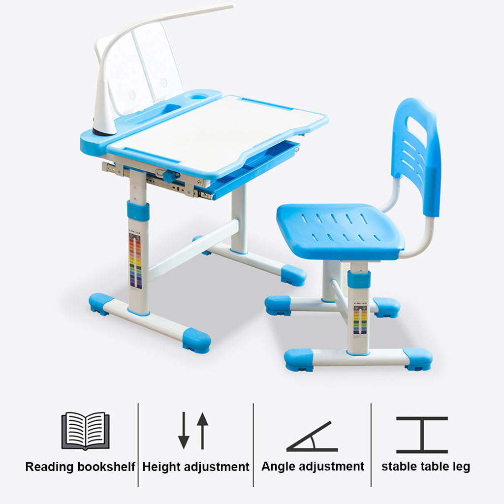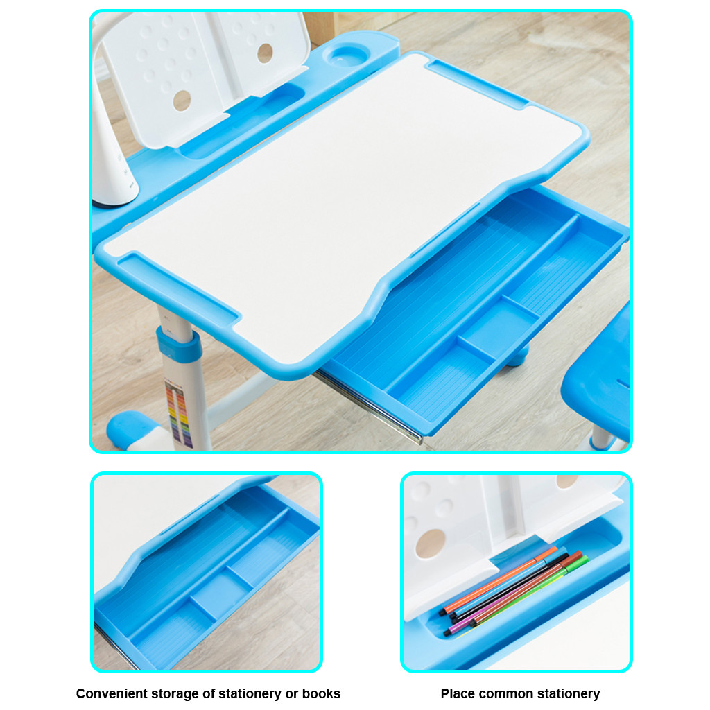 Height Adjustable Study Desk And Chair Set Pull Out Drawer With Tilted Desktop